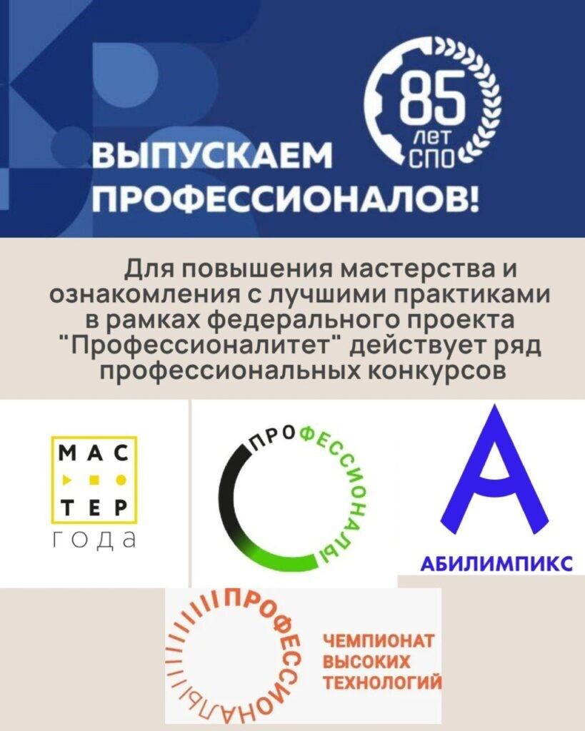 В честь 85-летнего юбилея СПО Министерство просвещения РФ утвердило план мероприятий, которые пройдут по всей стране. В их числе – конференции, выставки, тематические фестивали и другие события, направленные на повышение престижа рабочих профессий и популяризацию среднего профессионального образования среди молодежи.