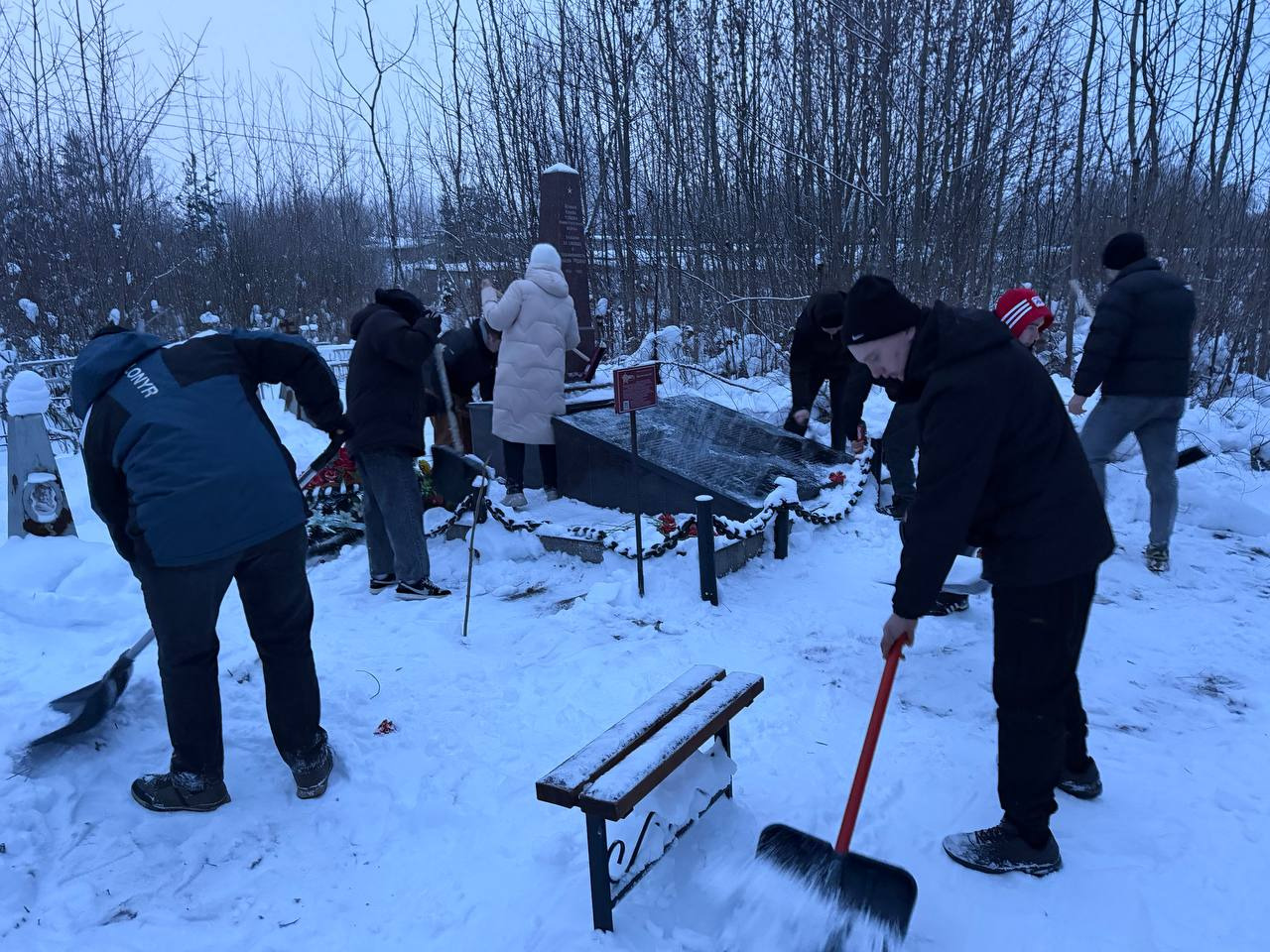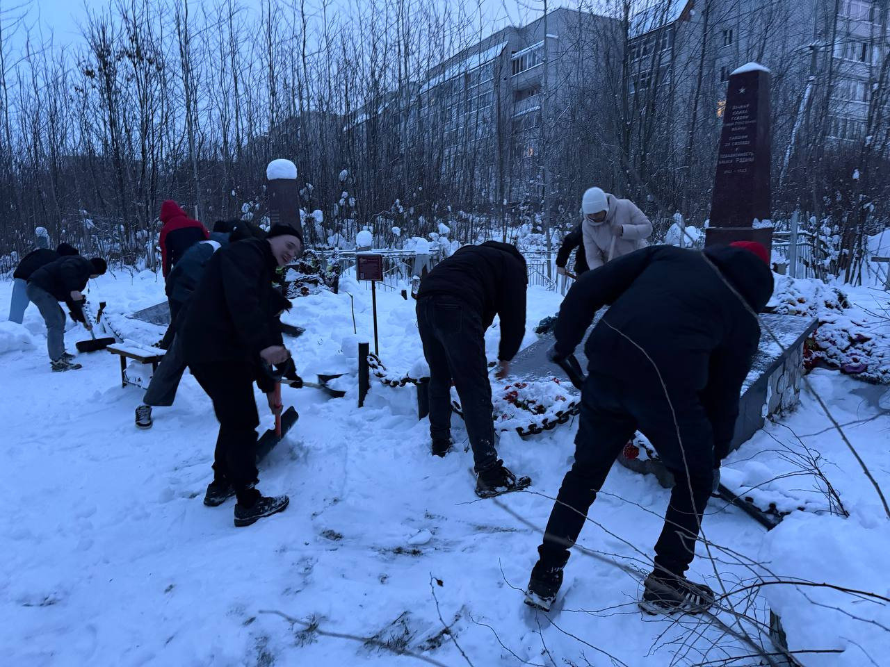 Студенты и педагоги очистили братские захоронения и территорию вокруг них от снега, чтобы отдать долг памяти тем, чья судьба навсегда связана с нашим учебным заведением. Это не просто уборка – это жест глубокого уважения и связующая нить между поколениями.