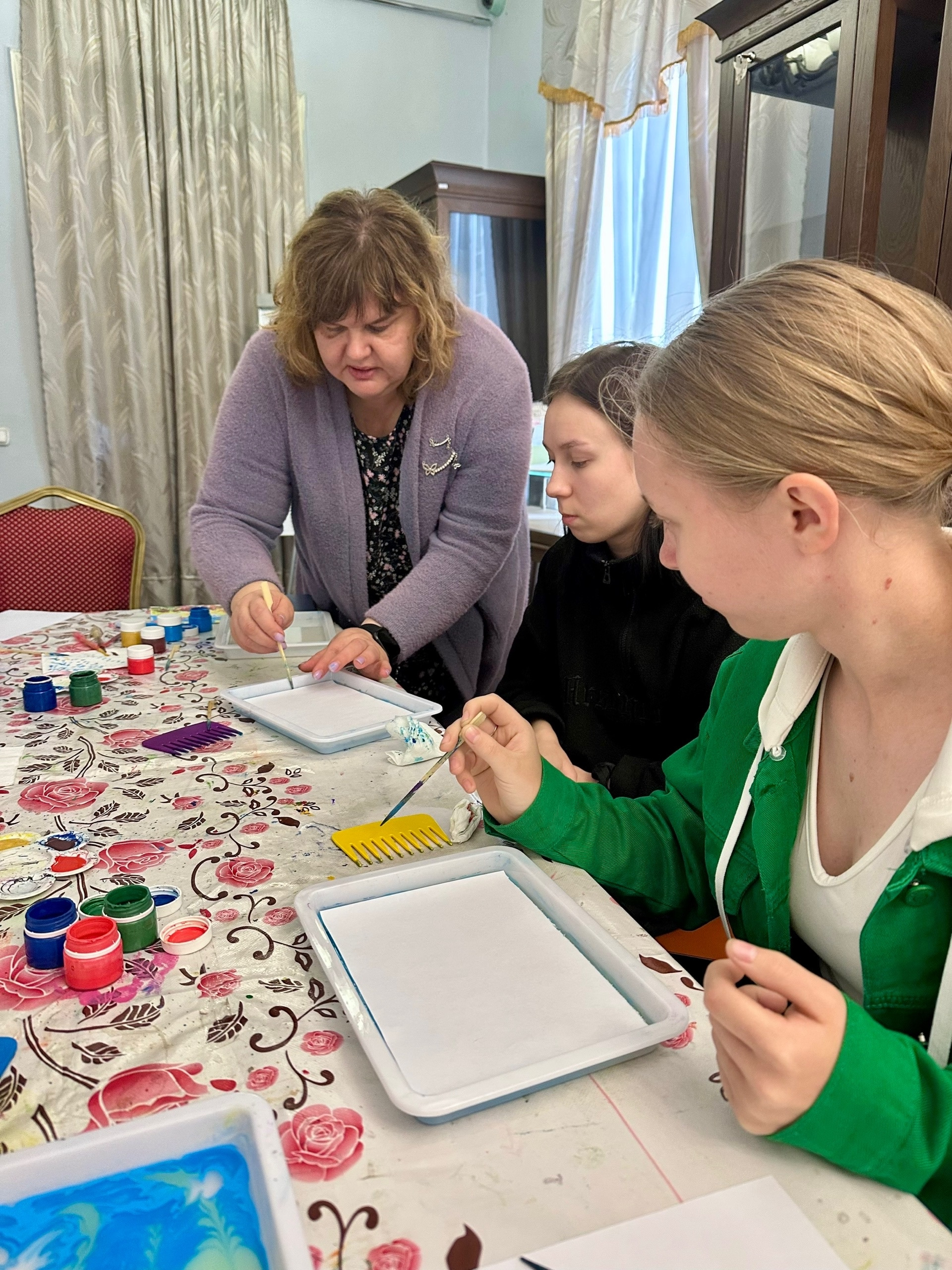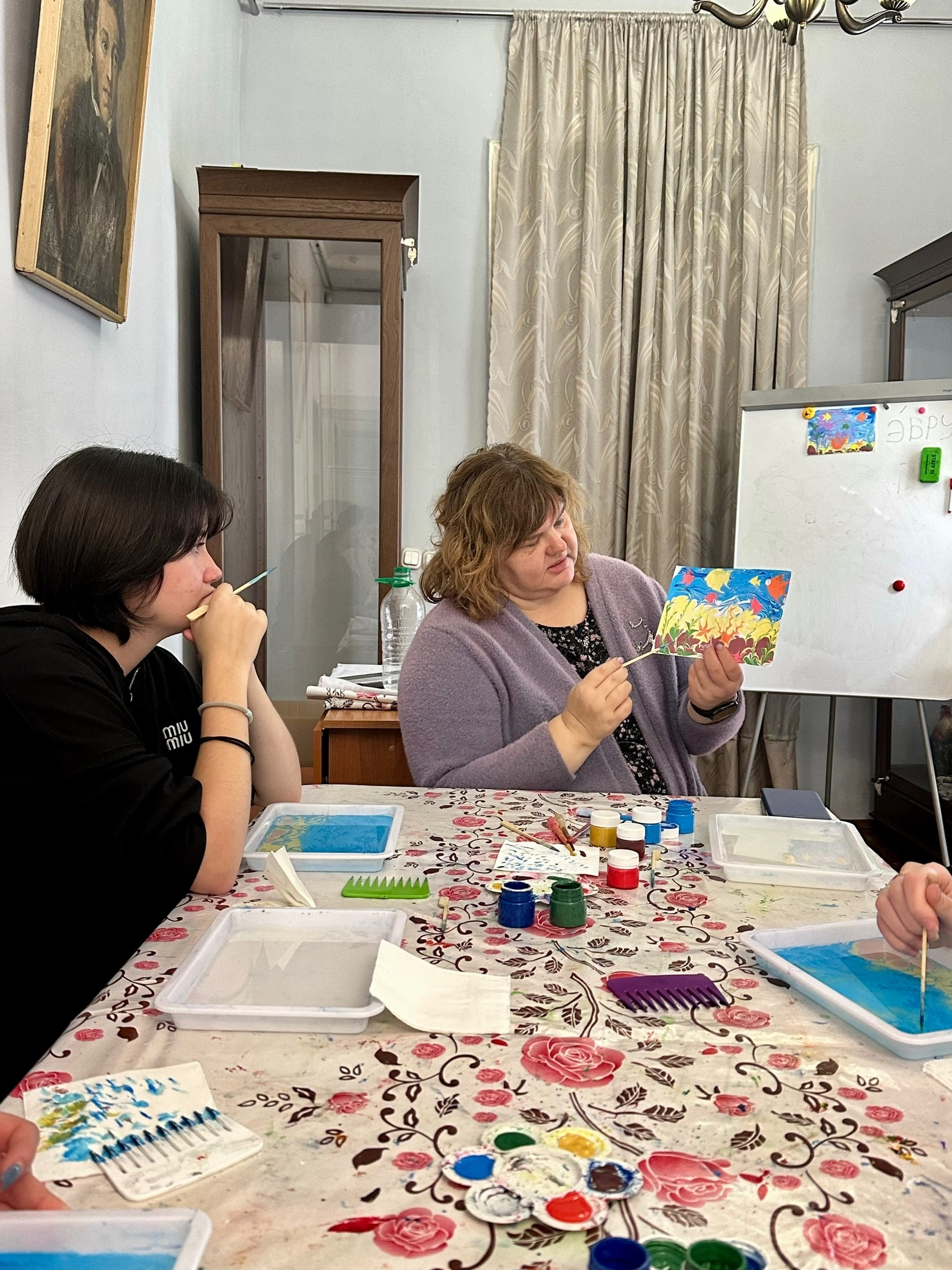 Студенты ТГПГК, обучающиеся по специальности «Гостиничное дело», 12 сентября посетили музей им. А.С.Пушкина с целью получения новых практических навыков в рамках изучения дисциплины «Организация досуговой деятельности в гостинице». Сотрудники музея провели мастер-класс по интересной росписи в технике «Эбру». Эти знания и навыки девушкам пригодятся в последующей профессиональной деятельности. Интересное занятие, не имеющее возрастных ограничений.