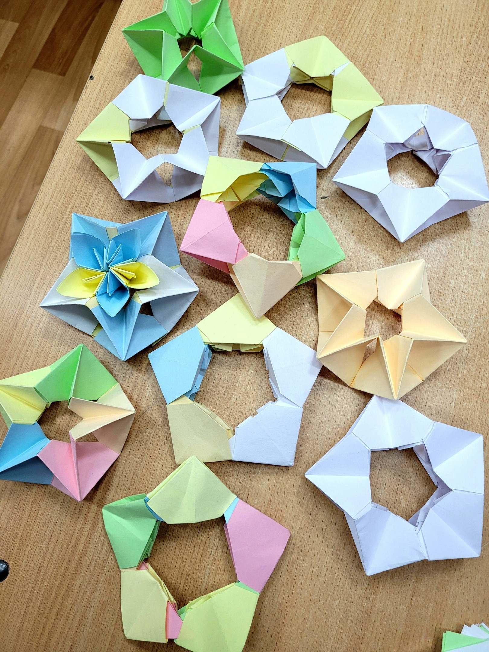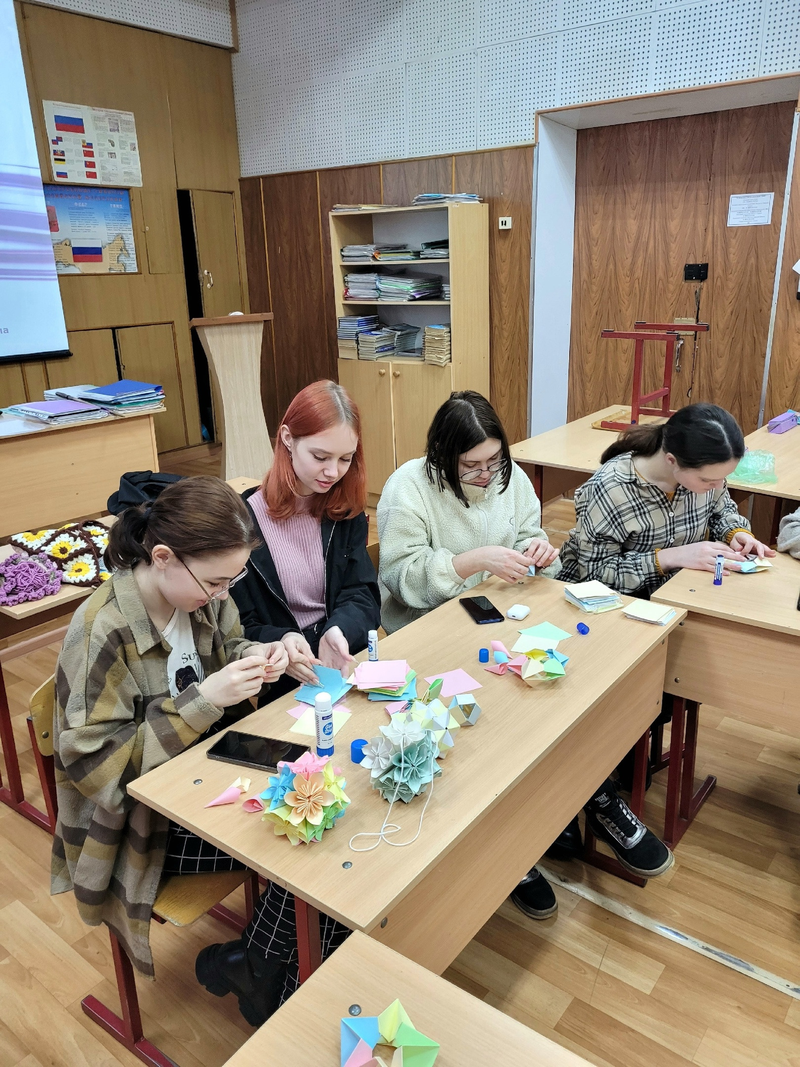 Все эти знания и умения отрабатываются на практических занятиях по дисциплине «Организация досуговой деятельности в гостинице» под руководством Ю.А. Кобелевой. И даже японское искусство кусудама - разновидность модульного оригами, студентам по плечу. Они самостоятельно создают инструкционные карты, образцы для демонстрации и готовы научить этому других! Тем более такое анимационное занятие не имеет возрастных ограничений и может быть организовано с любой туристской группой.
