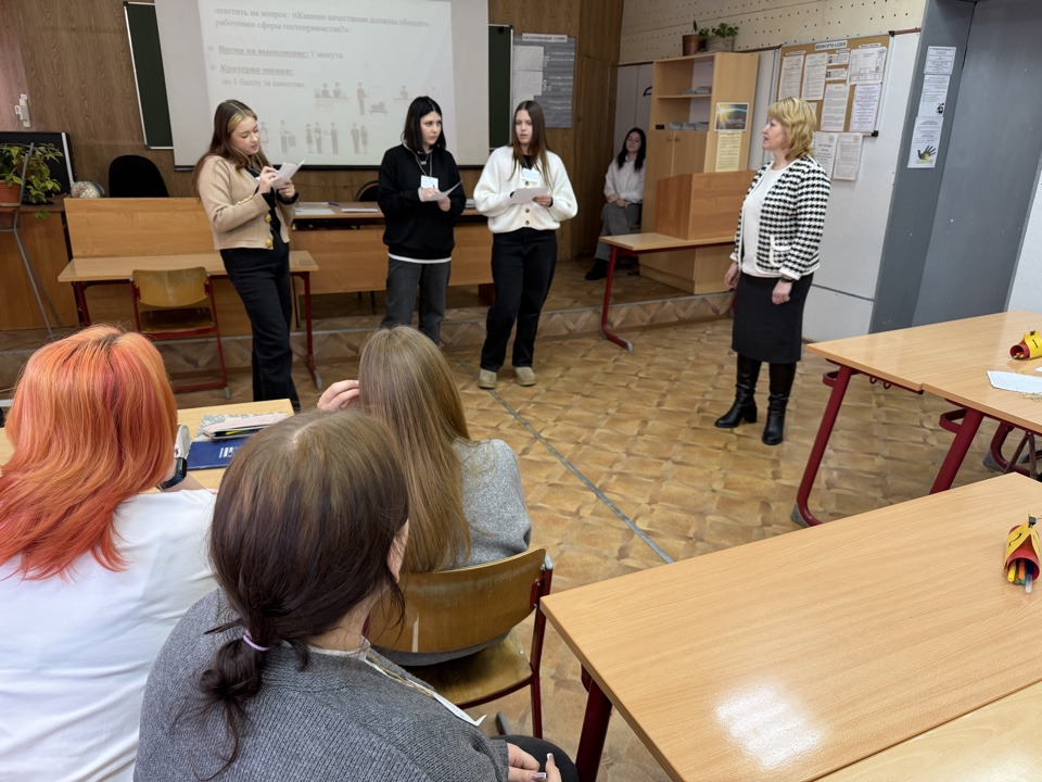 2 февраля в рамках Недели профессионального мастерства со студентами группы 2-13, обучающимися по специальности «Туризм и гостеприимство», преподавателем Беляковой Т.В. была поведена деловая игра «Гостеприимный сервис».
