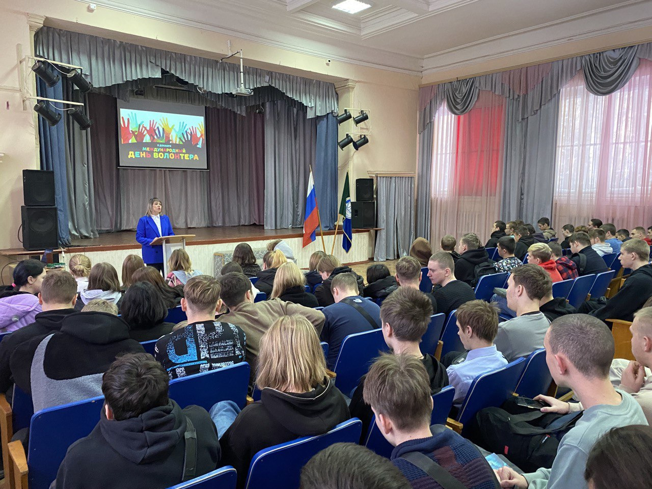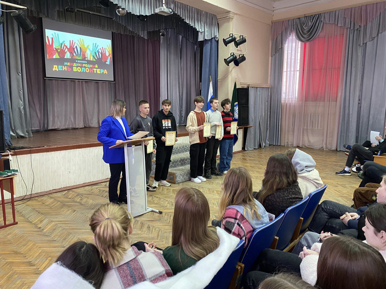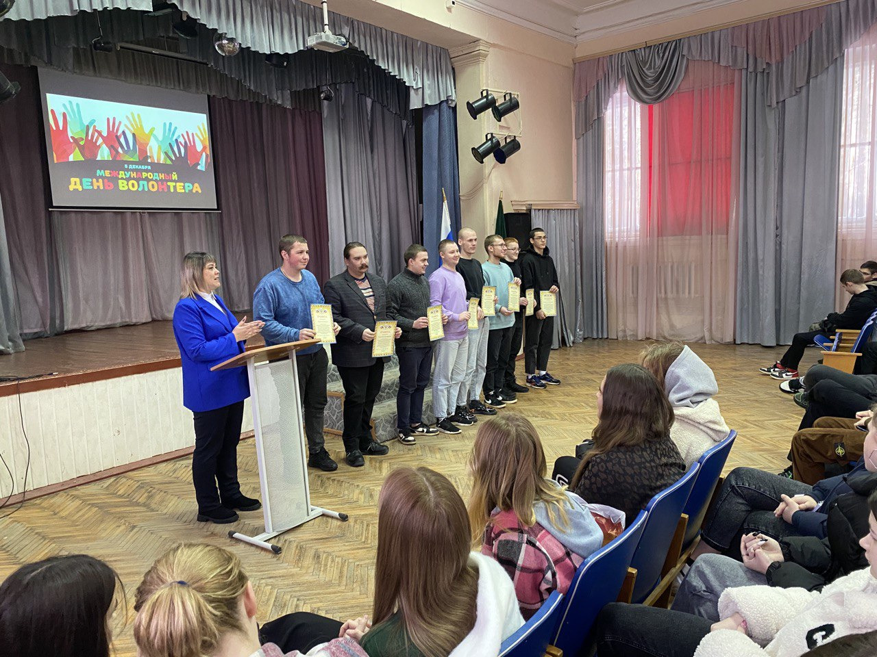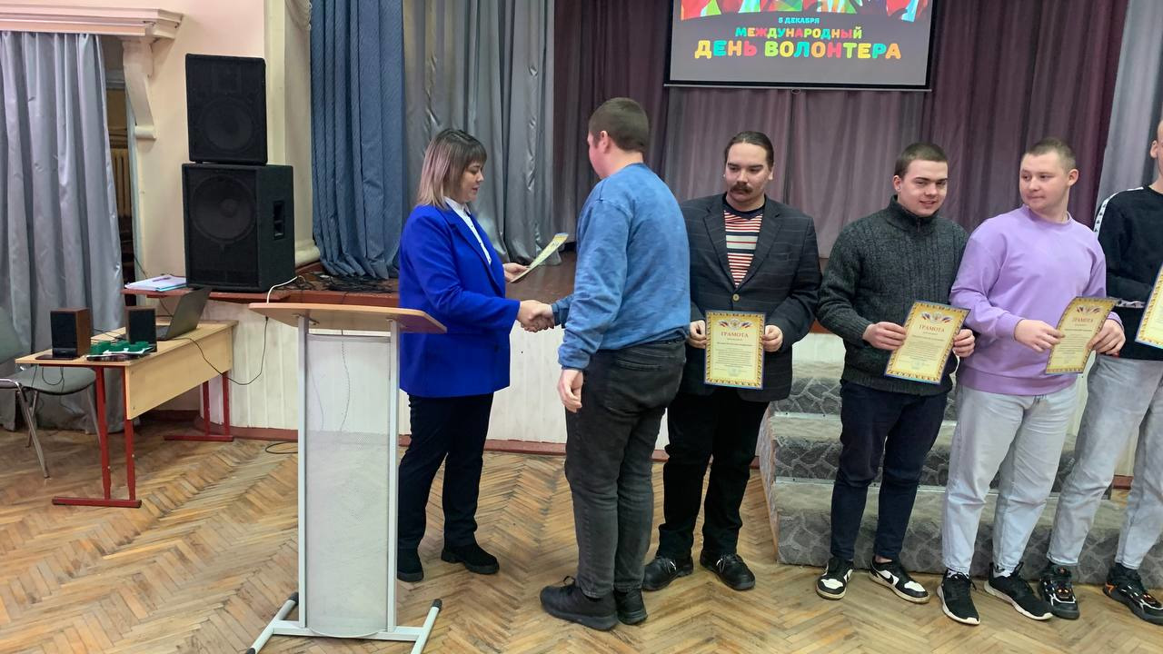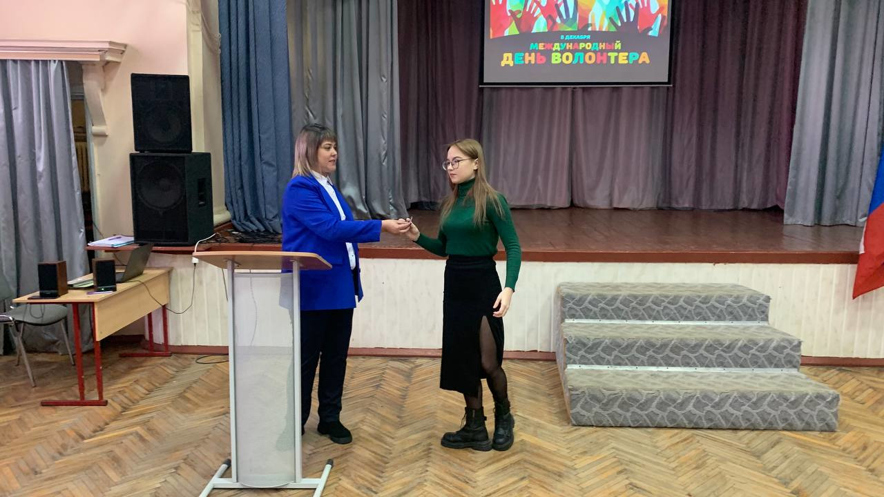 В День волонтера в актовом зал колледжа состоялось торжественное награждение лучших волонтеров колледжа за активную жизненную позицию, социально-значимую деятельность и личный вклад в развитие волонтерского движения колледжа. Также в торжественной обстановке были вручены значки «Движение первых» двум студенткам колледжа обучающимся на первом курсе.