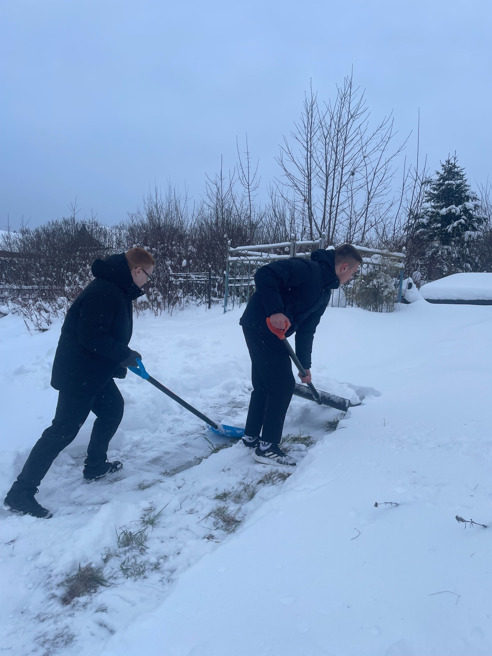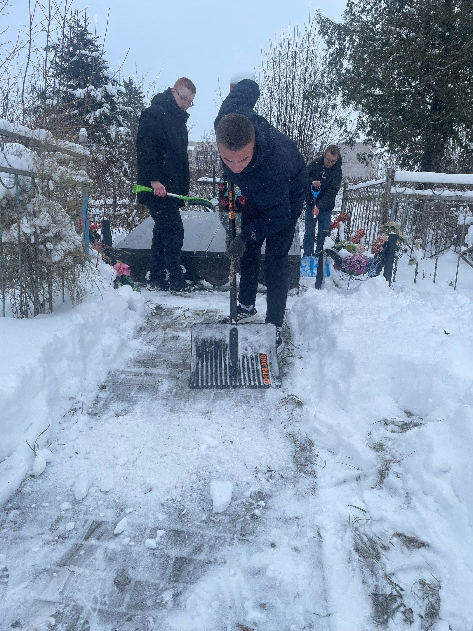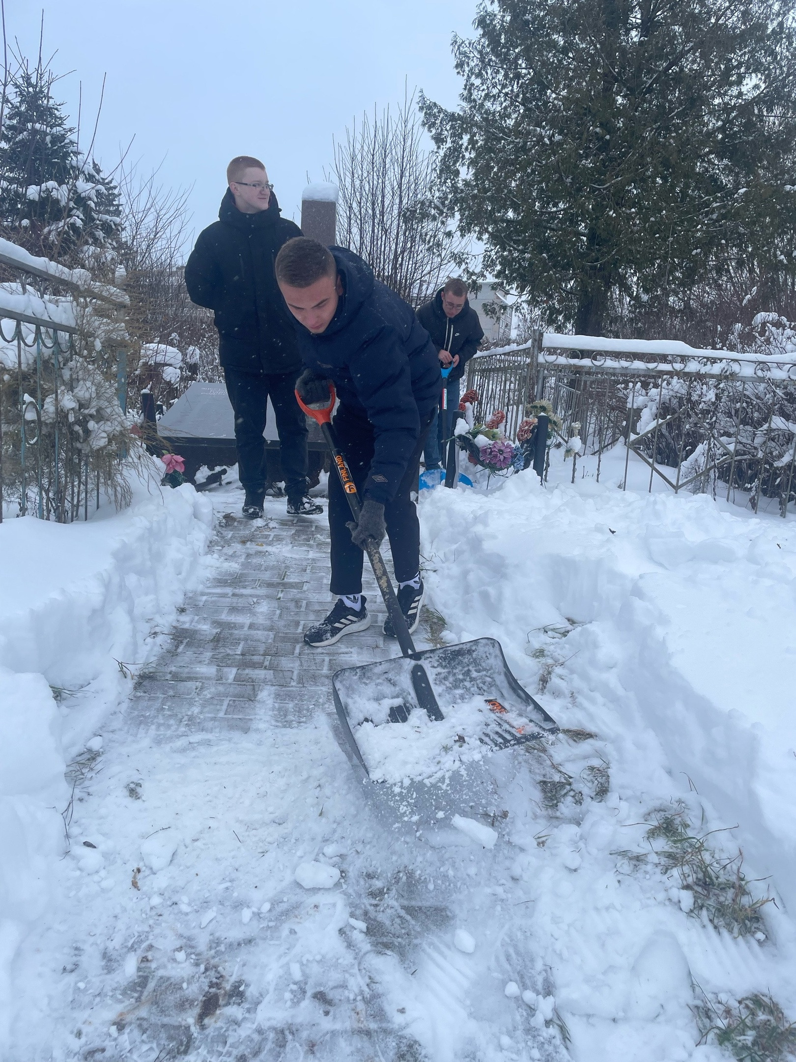 Волонтеры колледжа очистили от снега братские захоронения на Пустынском кладбище.