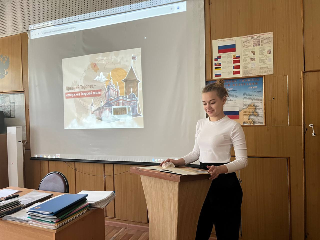 15 мая 2024 года в рамках «Разговоры о важном» советником директора по воспитанию и кураторами учебных групп был проведен классный час «Древний Торопец – жемчужина Тверской земли».