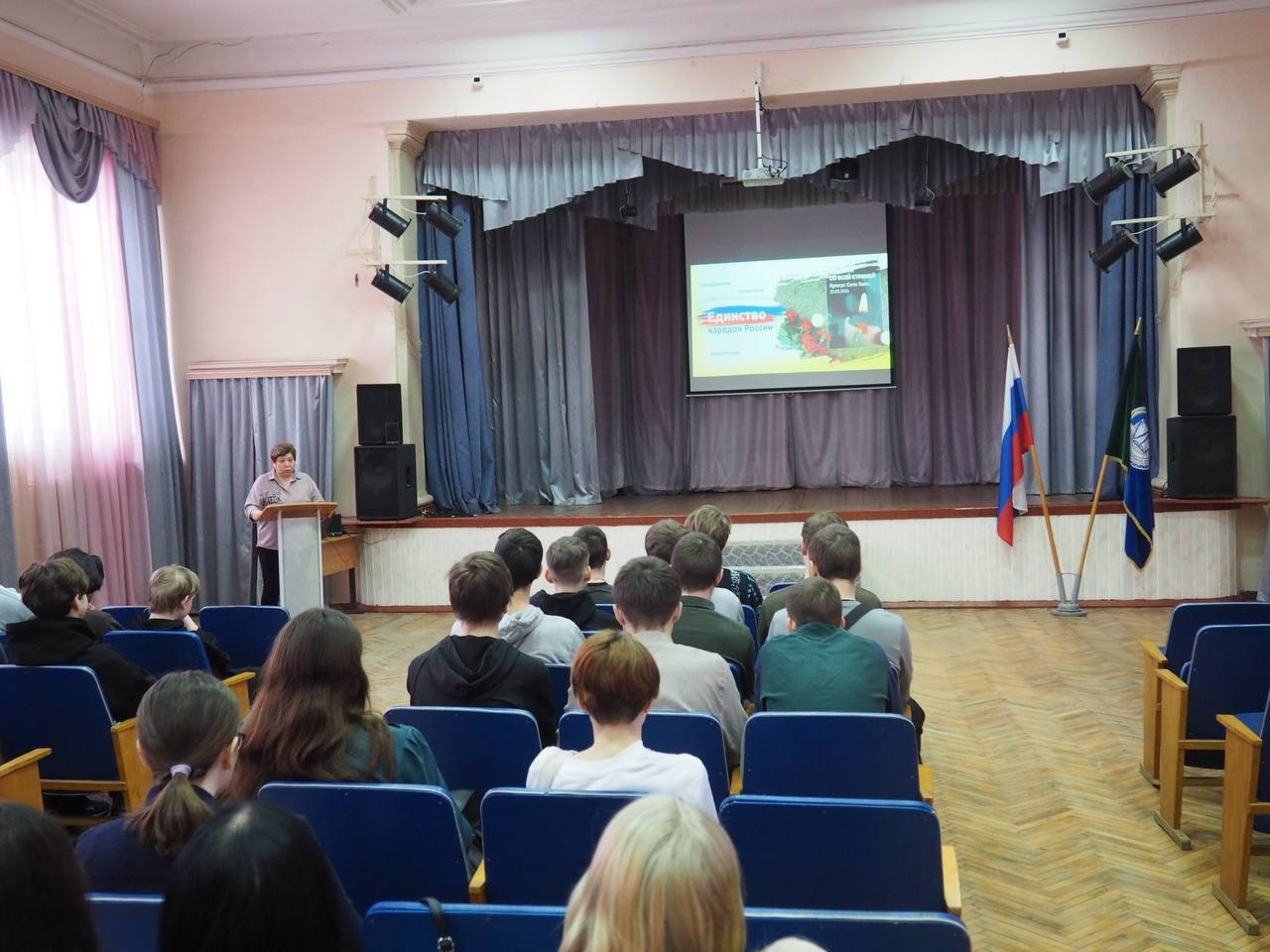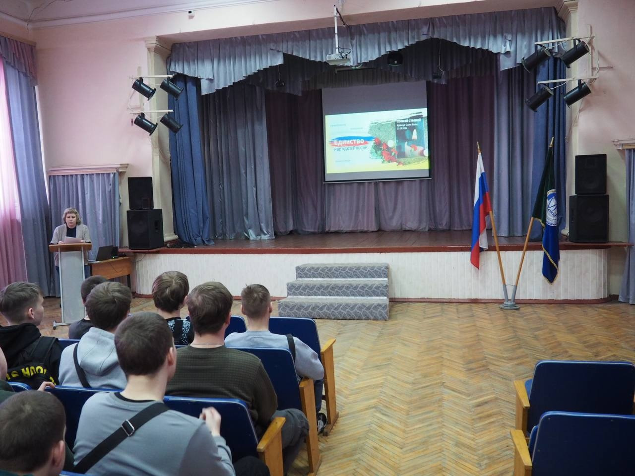 25.03.202425 марта, в понедельник, в рамках цикла внеурочных занятий «Разговоры о важном» в "Торжокском государственном промышленно-гуманитарном колледже" прошли классные часы на тему «Единство народов России».