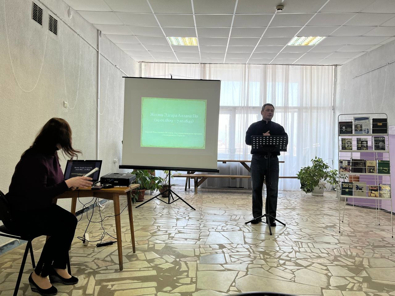 20.02.202420 февраля студенты колледжа посетили в ЦГБ им. В. Ф. Кашковой авторскую лекцию «И душа моя из тени не воспрянет больше, нет…», посвященную 215-летию со дня рождения классика мировой литературы, основоположника детективного жанра и научной фантастики Эдгара Аллана По.