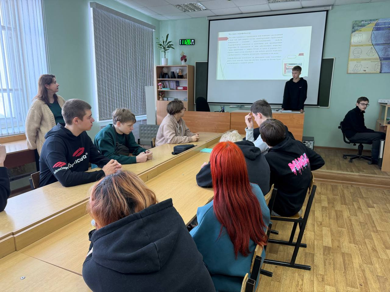 05.02.2026В рамках Недели профессионального мастерства 05 февраля в группе 1-15 был проведен интегрированный урок в форме симпозиума по физике, химии, математике «Использование достижений современной науки в строительстве».