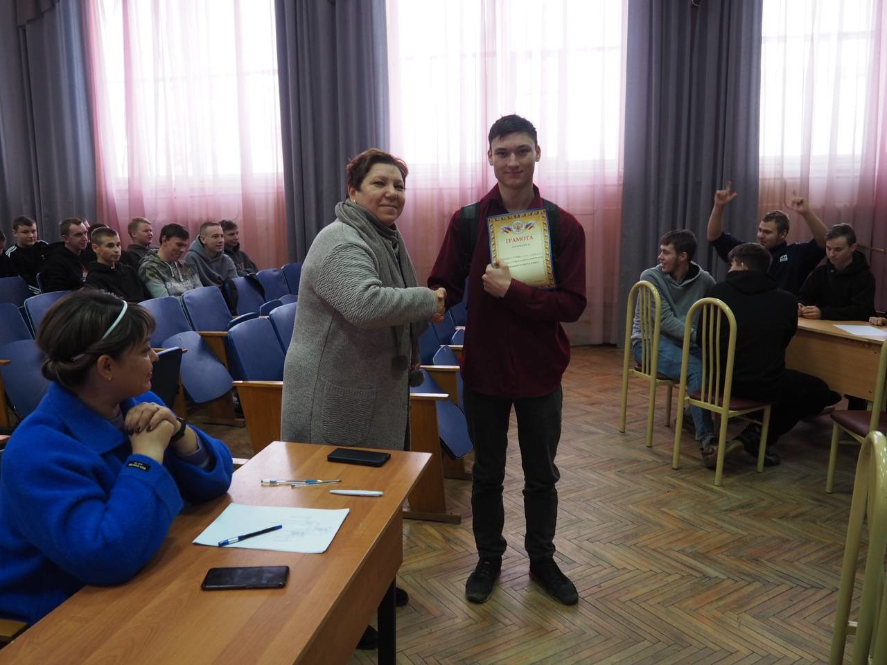 В общежитии колледжа, воспитателем Козловой Н.А. также 17 ноября была проведена викторина «Подросток и закон». Студенты обсуждали предложенные ситуации из жизненных случаев, отвечали на вопросы викторины, предлагали решения ситуаций с учетом конституционных прав человека.