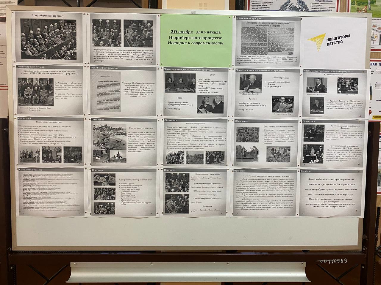 На первом этаже колледжа оформлен тематический стенд «20 ноября день начала Нюрнбергского процесса: История и современность».