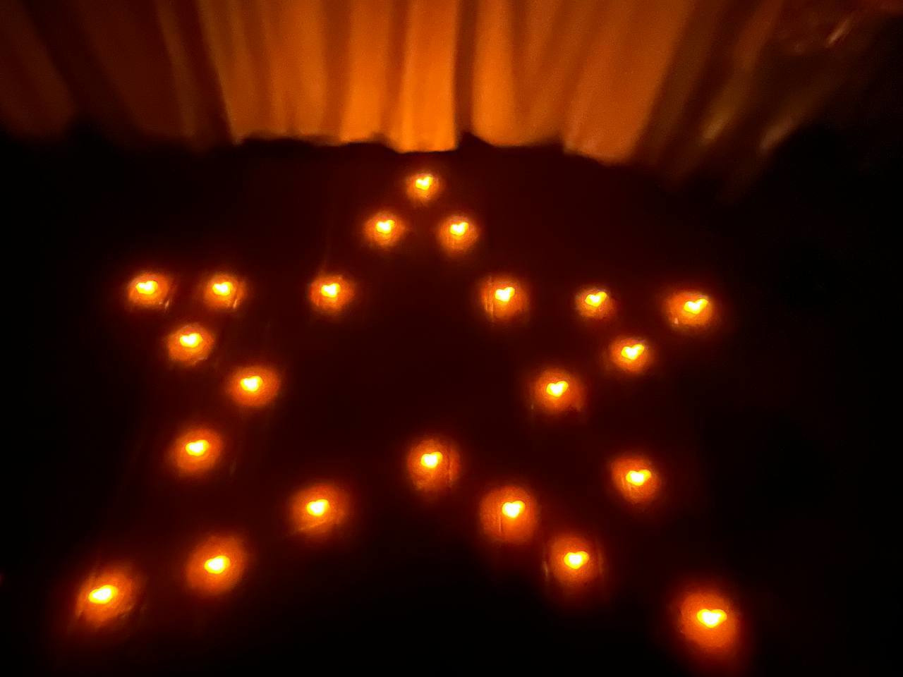 Студенты выложили из свечей пятиконечную звезду как символ охраны и безопасности.