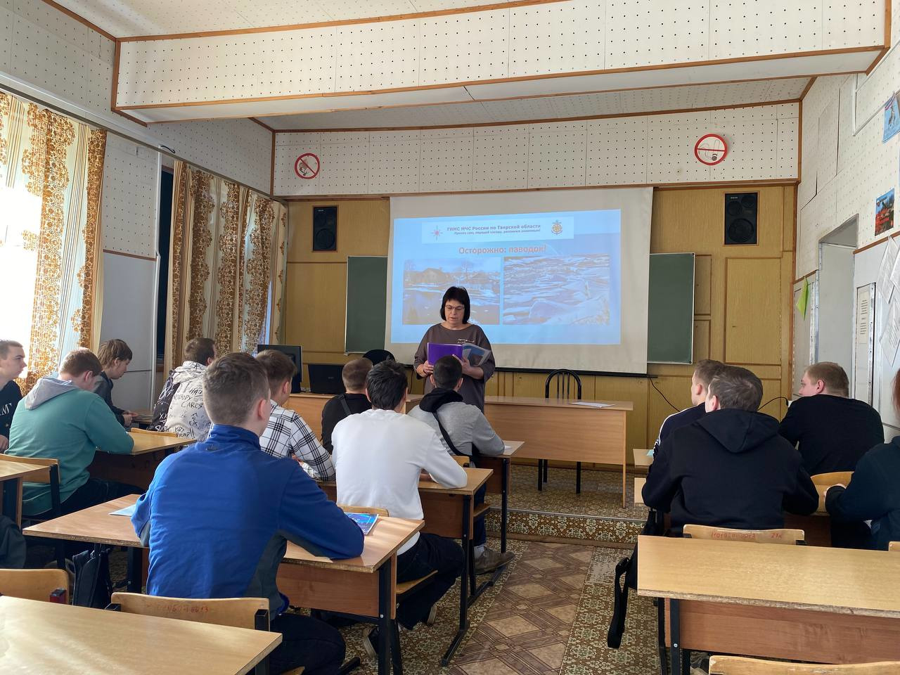 Для мероприятия были использованы материалы ГИМС МЧС России по Тверской области, были показаны видеоролики «Правила поведения на водоемах в весенний период». Также подробно рассмотрен вопрос «Оказание помощи провалившемуся под лед».