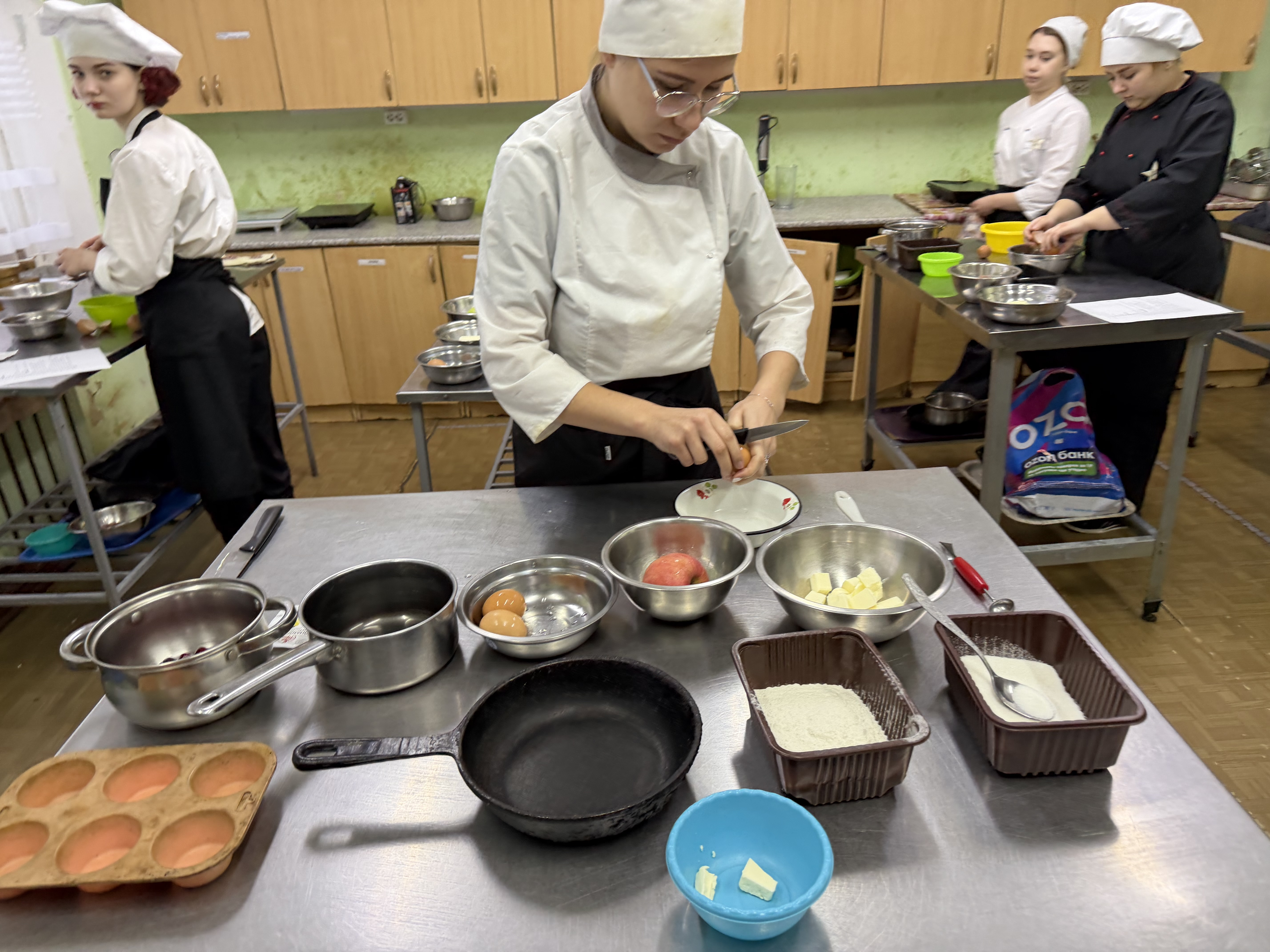 Студенты четвёртого курса доказали, что достойны звания профессионалов. Их заданием стало приготовление пирожного «Корзиночка с белковым кремом» в авторской интерпретации. Каждый участник вложил в работу фантазию и мастерство, превратив классическое десертное изделие в маленькое кулинарное произведение искусства.