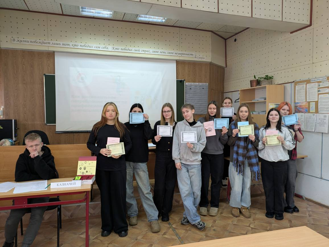 В конце урока наиболее активные студенты получили сертификаты, удостоверяющие их статус рационального потребителя.