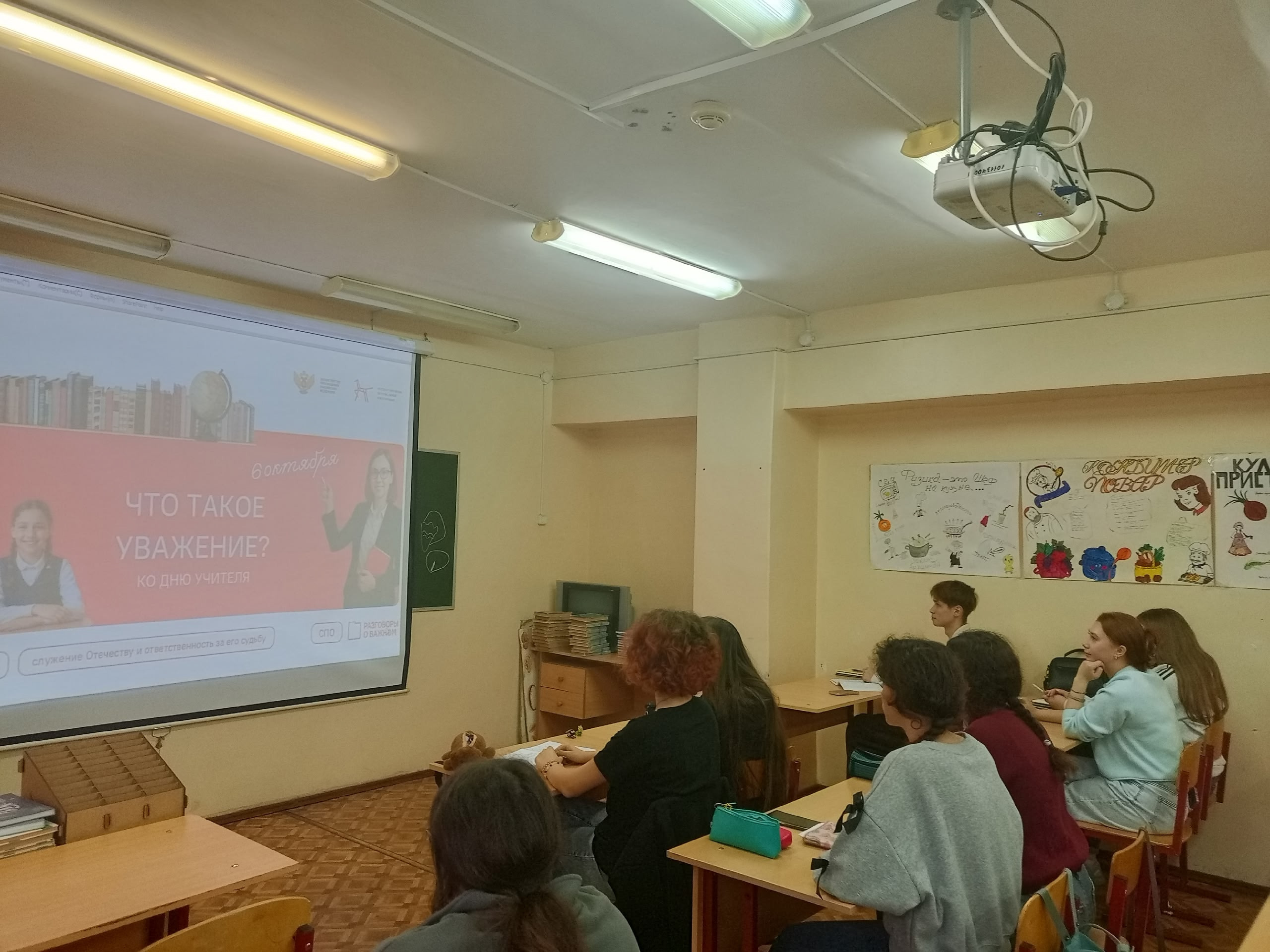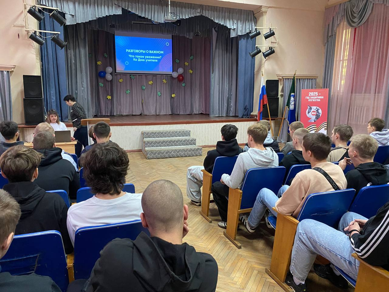 В рамках цикла «Разговоры о важном» прошло занятие, посвящённое уважению и Дню учителя. Студенты обсудили огромную роль педагога в жизни каждого человека и общества, а также важность уважительного отношения к труду, культуре и окружающим. Цель – формирование осознанной и ответственной позиции у подрастающего поколения.