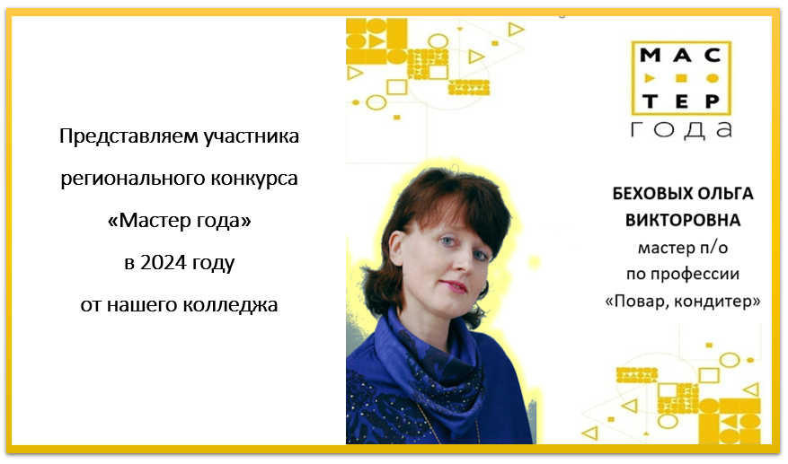 Ольга Викторовна Беховых, мастер производственного обучения по профессии «Повар, кондитер» – участник конкурса «Мастер года – 2024».