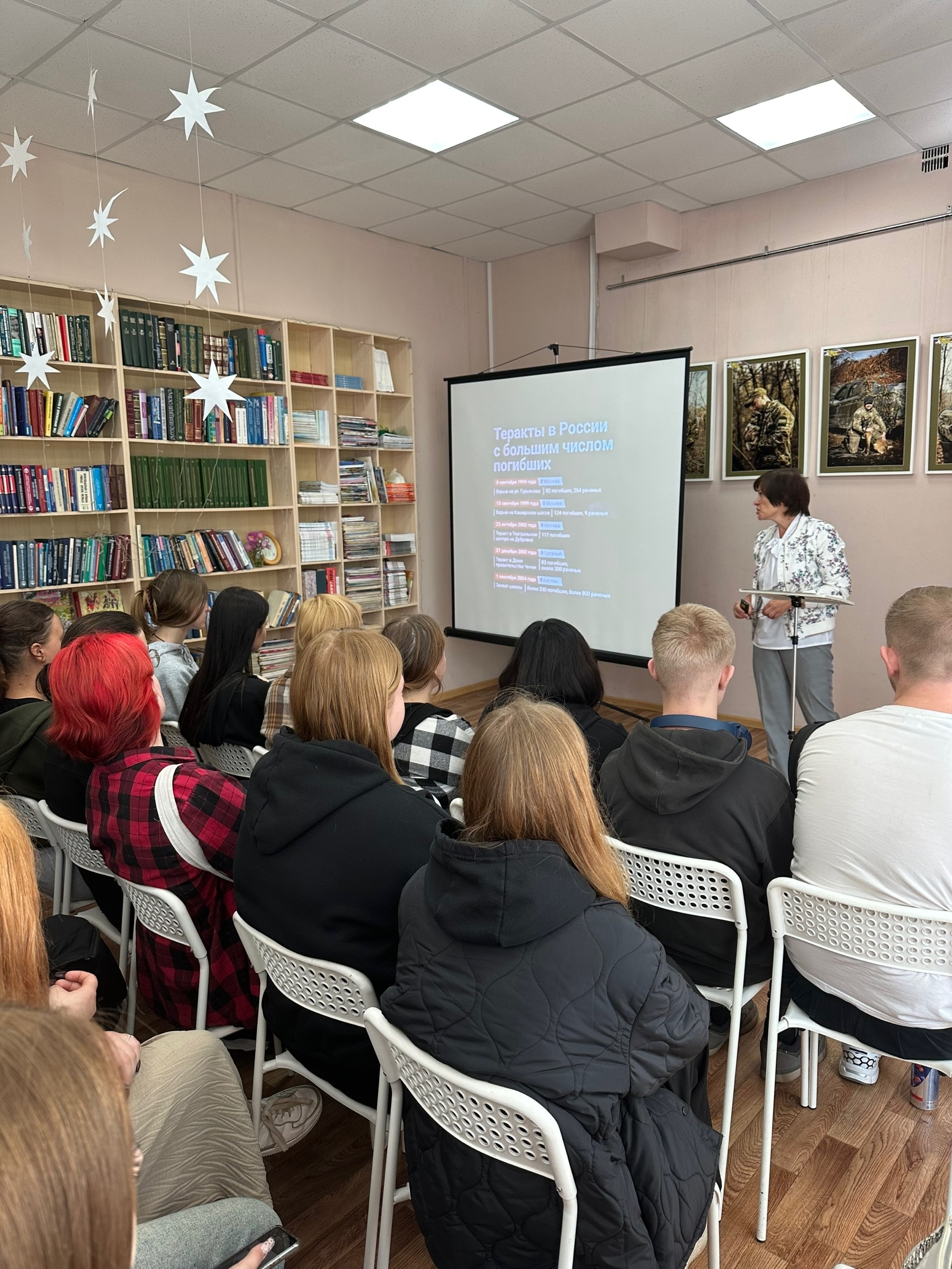 03.09.20253 сентября студенты группы 2-13 под руководством Ю.А. Кобелевой посетили библиотеку им. М. Горького и приняли участие в мероприятии, посвященном дню памяти событий в Беслане. Сотрудники библиотеки рассказали студентам об опасности терроризма и продемонстрировали документальный фильм об антитеррористической операции, в результате которой удалось спасти десятки жизней. Выражаем благодарность сотрудникам библиотеки за интересную беседу и организацию важного мероприятия.