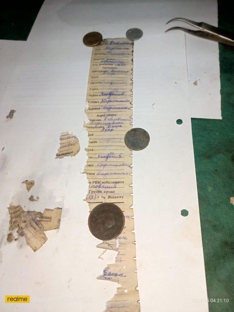 Поисковые работы ведутся в тяжелых условиях, в раскопе почва глинистая и много воды. Отрядом найдено большое количество личных вещей красноармейцев, элементы обмундирования, боеприпасов. Основной находкой для идентификации личности погибшего является медальон – в этом году было найдено 22. Но иногда установить личность солдата помогают и именные личные вещи, например, портсигар с выцарапанными фамилией и датой.