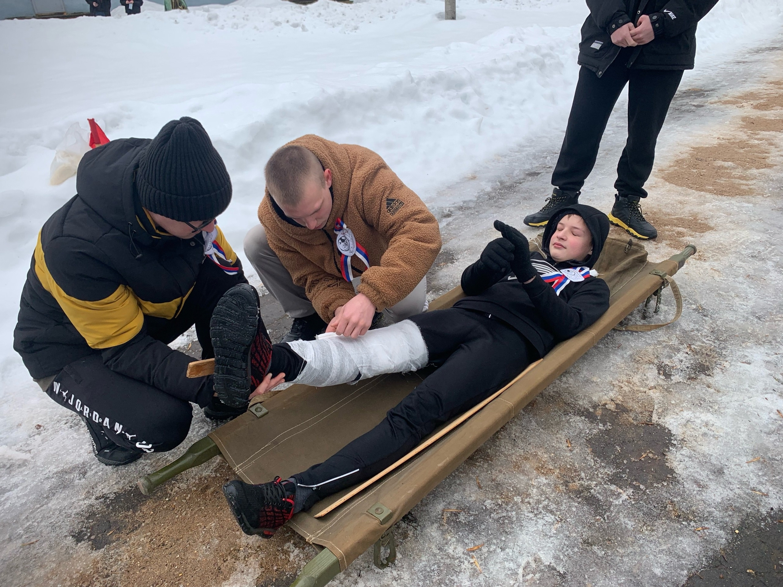 Программа соревнований включала практическое занятие по применению средств индивидуальной защиты, оказанию первой помощи, передаче сигналов бедствия используя подручные материалы и жесты.