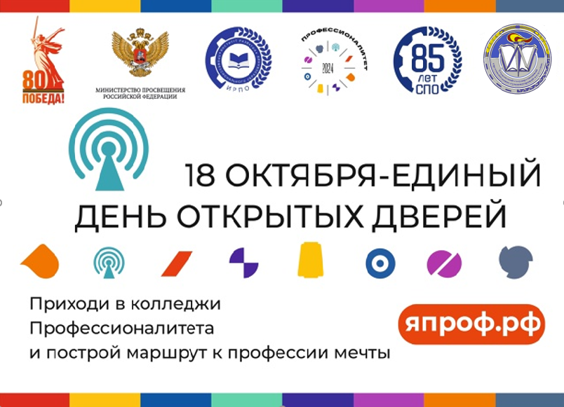 18 октября 2025 года в Российской Федерации проводится Единый день открытых дверей Федерального проекта «Профессионалитет».